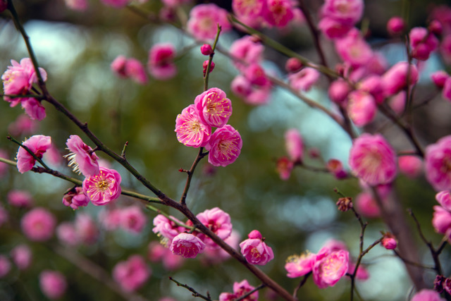 満喫 2023年02月09日 栄作の晴れたり曇ったり 五分咲きの紅梅 昨日は晴れて暖かかったので舞鶴公園の梅を見に行きました。白梅の開花が始まり紅梅は五分咲きでメジロやミツバチも訪れて早春を満喫。でも、今日は下り坂。短い周期で変わるので晴れの日に訪れすべし。今日は曇り、夜遅く雨。