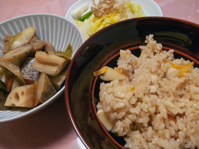 ご近所さんから筍をいただいたので昨晩は筍ご飯。春を満喫〜。今日は晴れ、夜曇り、夜遅く所により雨。