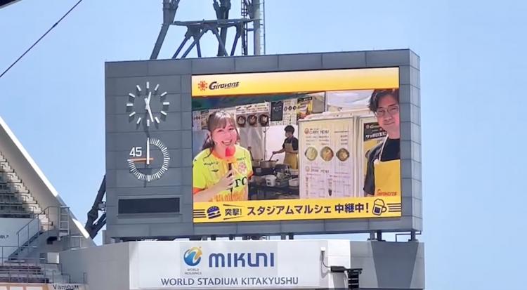 これからスタジアムの大型ビジョンにおじゃまし、その日のオススメ情報をお届けしたいと思います!
