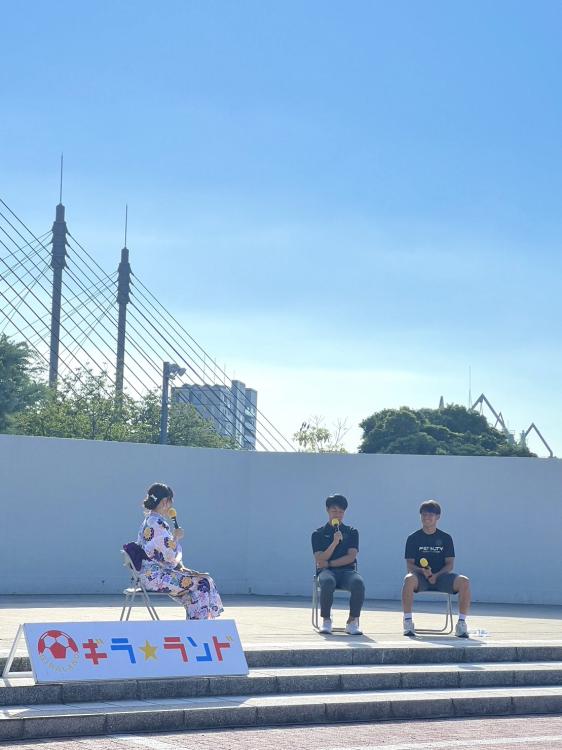 選手トークショー&サイン会もステージ前は大賑わい。笑顔が眩しい池高暢希選手、前田紘基選手が登場でした。