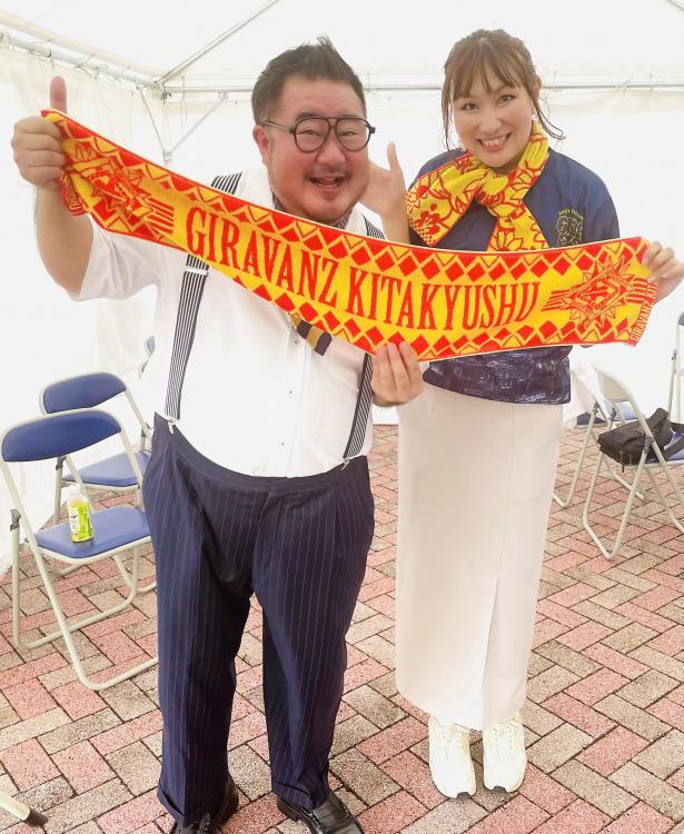 北九州市観光大使の芋洗坂係長のパフォーマンスには大勢のサポーターが集まり、会場は笑いに包まれて大盛り上がり!