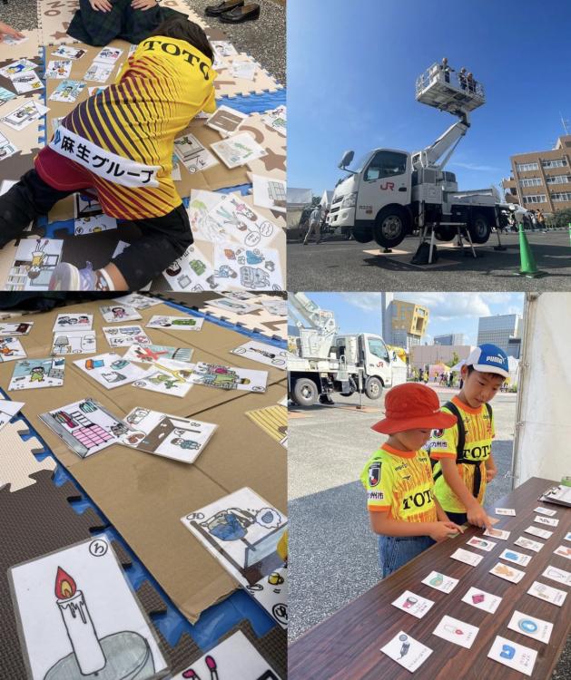 上形選手や坪郷選手の防災トークショーや、高所作業車乗車体験、