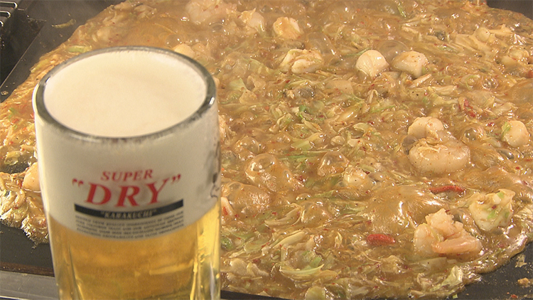 アツアツの鉄板で仕上げる一品料理は、ビールとの相性も抜群。