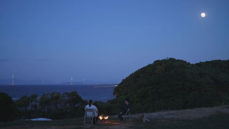 響灘の洋上には、地域にエネルギーを供給する風車が浮かび、その上空で月が煌々と輝いていました。