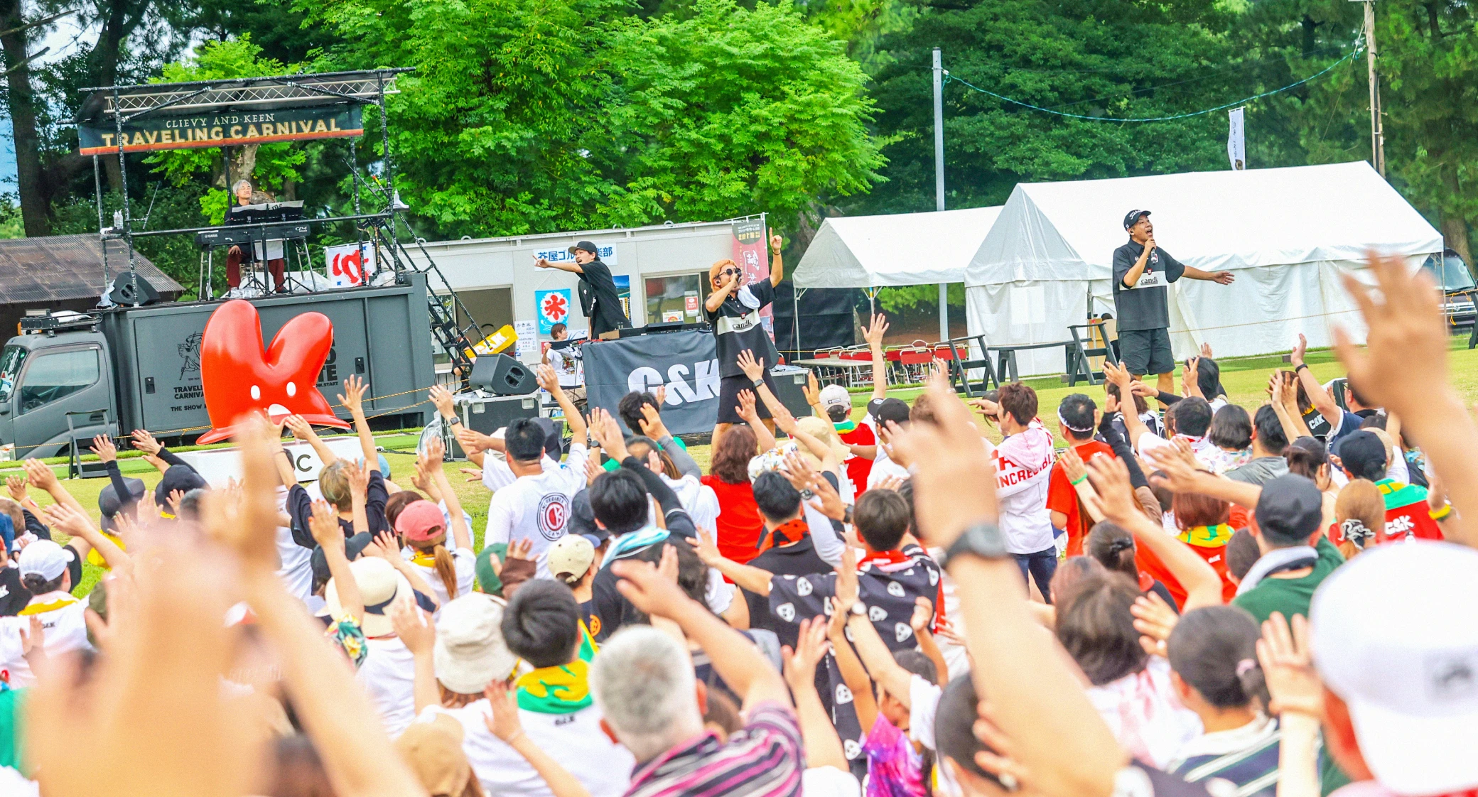 ゴルフ場内で行われた、C&Kによるライブパフォーマンス