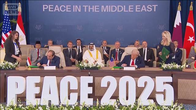 トランプ大統領は13日、エジプトで開かれたガザでの戦闘終結と今後の和平を話し合う国際会議で、仲介国の首脳と共に停戦合意に関する文書に署名しました。