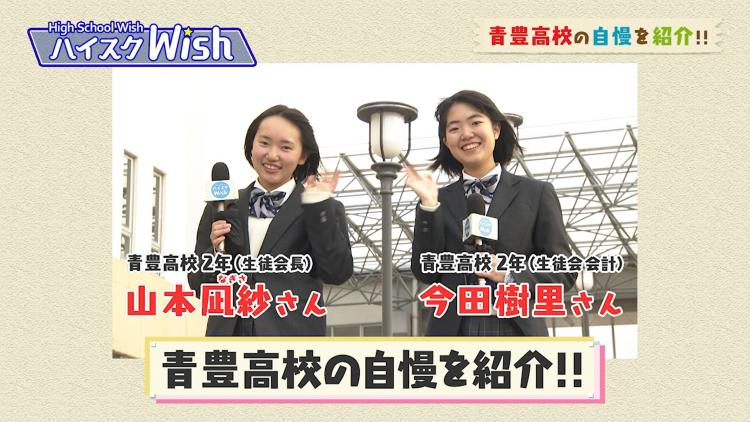 リポーターは、2年生で生徒会長の山本凪紗さんと、同じく2年生で生徒会会計の今田樹里さん。2人が“わが校自慢”として紹介してくれたのは、陸上部の100mハードル走選手で、2年生の伊藤彩香さん。入学前から「足が速い人が青豊にくるよ!」と噂されていたほど、有名だったそうです。山本さんたち曰く「とにかく明るい!それに陸上だけではなく、体動かすことすべて本気!」だという伊藤さん。早速会いに行ってみましょう。