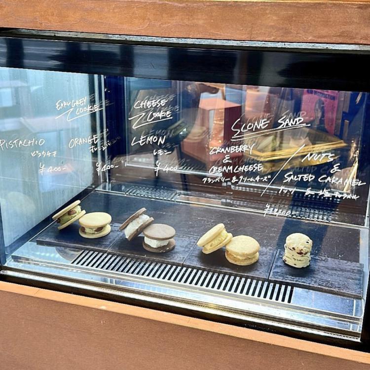 ショーケースにはとっても可愛いサンドクッキー達がいまか、いまかと、、出番待ち! 通常のサンドクッキーにはない独特な味付けと組み合わせで、食べるまでもワクワク。