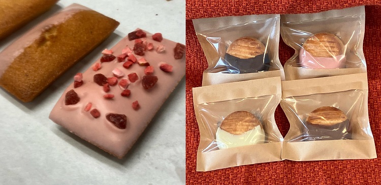 大野城店は「DEMI-SEC」とコラボ店のため、焼き菓子も充実!「シェ・シバタ」とコラボしたソフトクッキーがプレオープン時から大人気で、一時売り切れになったほど。また、オリジナルフィナンシェ「クオンシェ」(写真左)や、ガレットとサブレの“いいとこどり”をした「ガブレ」(写真右)など、たくさんそろっています。