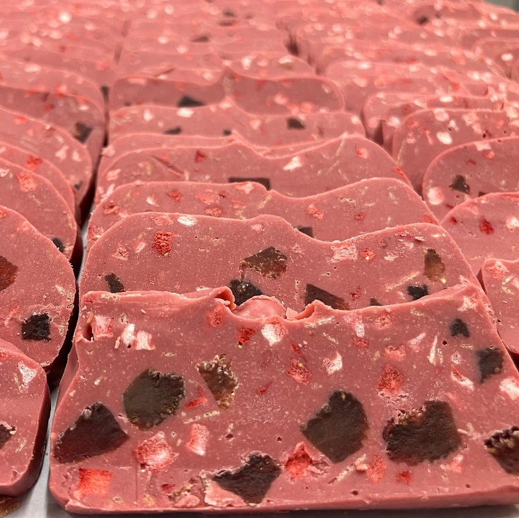上質なカカオをベースに、ドライフルーツやナッツを混ぜ、さまざまなフレーバーに仕上げた「久遠テリーヌ」。キャラメルナッツ+オレンジピール『ノアール』、ホワイトチョコ×ペカンナッツ+ヘーゼルナッツ、ほうじ茶チョコレート×黒豆など、王道から創意工夫を凝らした組み合わせまで種類豊富!大野城店でも、たくさんの人がかごを手に選んでいましたよ。