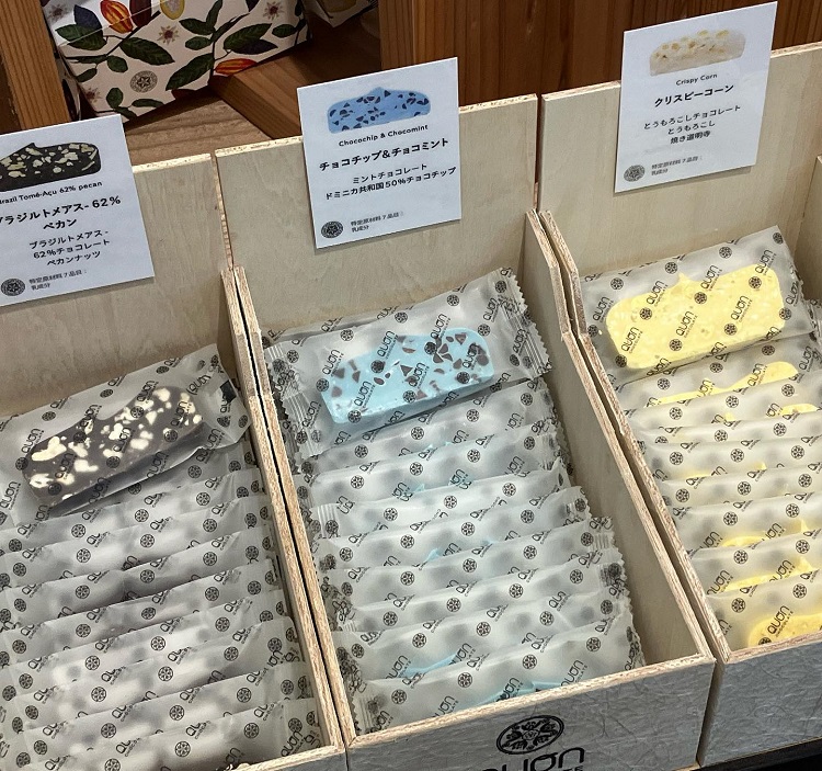 『QUONチョコレート』では、100%オーガニック&フェアトレードのチョコレートを扱うKAOKA社のカカオを使用。多数の名門チョコレートをプロデュースする野口和男さんをチーフショコラティエに迎え、オリジナルチョコレートと、日本各地のおいしい食材とチョコレートがマリアージュした「久遠テリーヌ」に力を入れています。