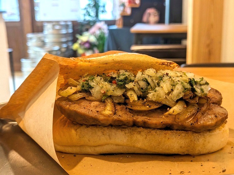 また、マカロンも大人気!味はおよそ50種類あるそうですが、その日のオーナーの気分で毎日10種類ほどのマカロンを作り上げているんだそう!中村さんが井上桃子リポーターの目の前に持ってきたのは新作の「バーガーマカロン」。まるでミニチュアのハンバーガーのようで、とってもかわいいですね♪パティはスイートチョコのクリームで再現。チーズはホワイトチョコ、レタスはピスタチオクリームと、色や細部にこだわっているのがわかります。試食した井上リポーターも「おいしい!いろんな味と触感があって、食べていて楽しいです!」と大満足。特にスライスチーズに見立てたホワイトチョコのパリパリとした触感が気に入ったようでした!
