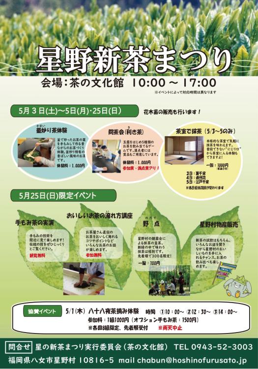 問い合わせ:0943-52-3003(星の新茶まつり実行委員会 茶の文化館)