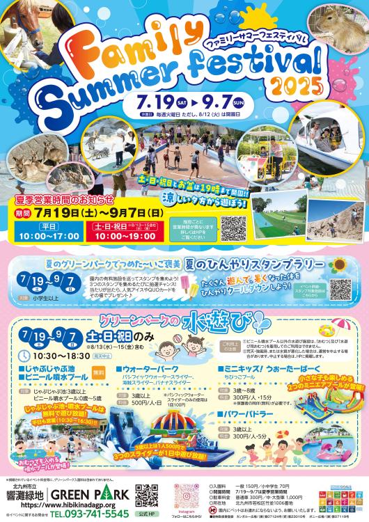 北九州市若松区の「響灘緑地クリーンパーク」で、2025年9月7日(日)まで『ファミリーサマーフェスティバル2025』が開催されています。グリーンパーク初の試みで、土・日曜、祝日は19時まで開園。涼しい夕方から遊ぶことができます♪