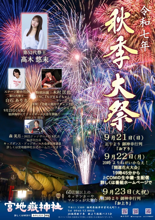 宮地嶽神社(福岡県福津市)最大の祭典『秋季大祭』が、9月21日(日)から23日(火・