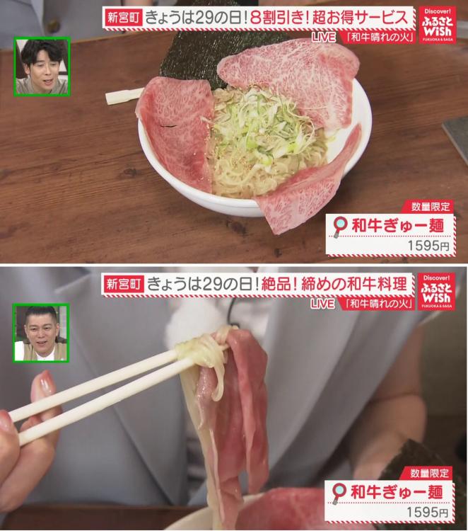 大きなザブトン肉が器を覆い尽くす「和牛ぎゅー麺 ※数量限定」(1595円)は、牛すじを3日間じっくり煮込んだという濃厚なスープが特徴。