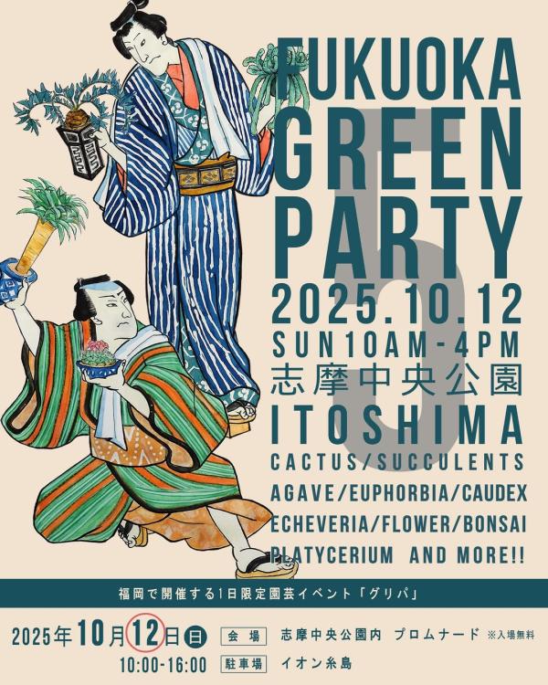 10月12日(日)に、福岡県糸島市の志摩中央公園で、園芸イベント『第5回 福岡グリーンパーティー』が開催されます。