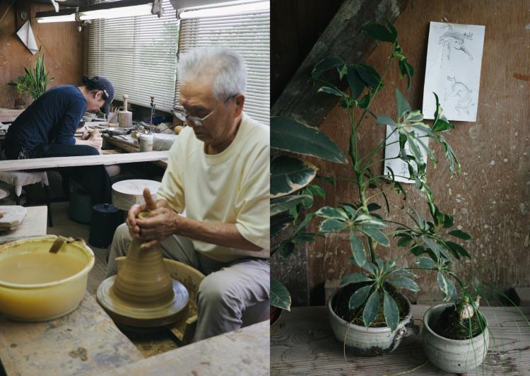 そんな師匠の背中を追うのが水上さんです。幼い頃から家で使っていた器がすべて浜本さんの作品だったとか。保育園の頃から陶芸家を志し、大学時代にはコロナ禍で通学が制限される中、『三里窯』でアルバイトを経験した後、弟子入りを決意しました。「こんな素敵なものがどんどん廃れていって無くなるのが、ずっと嫌だなと思っていた」と語ります。