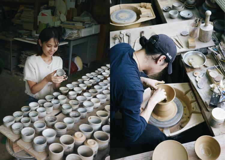 「唐津焼は敷居が高いと思われがちだけど、もっとポップに日常で使ってもらえたら」と水上さん。浜本さんの精神を受け継ぎつつ、現在は、ポップアップイベントを行ったり、SNSを使って制作風景や作り手の人柄が伝わる映像や情報を発信。伝統を守りながら、若い人にも手に取ってもらえるようにマグカップやお香立てなど、現代のライフスタイルに寄り添う器づくりにも挑戦しています。