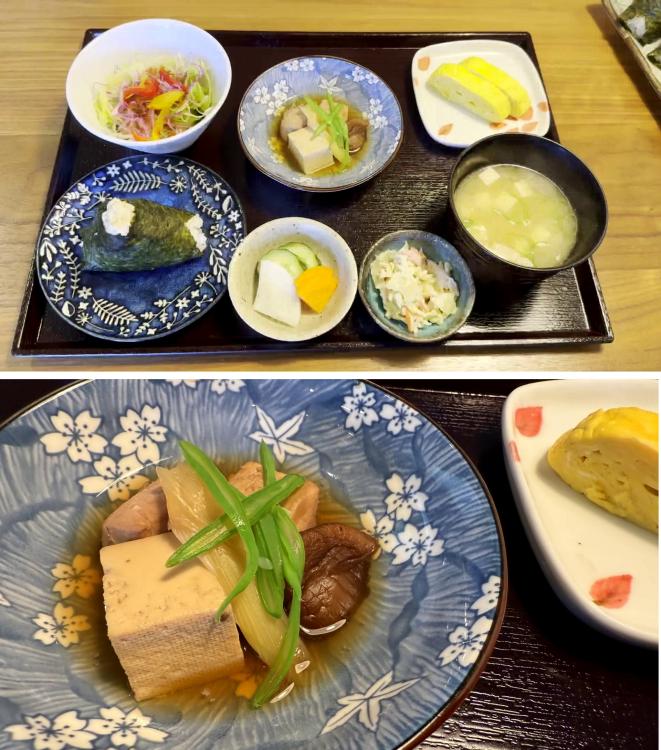 味噌汁、小鉢、漬物、サラダ、だし巻き卵、そして本日の一品がついた、大満足のセット。