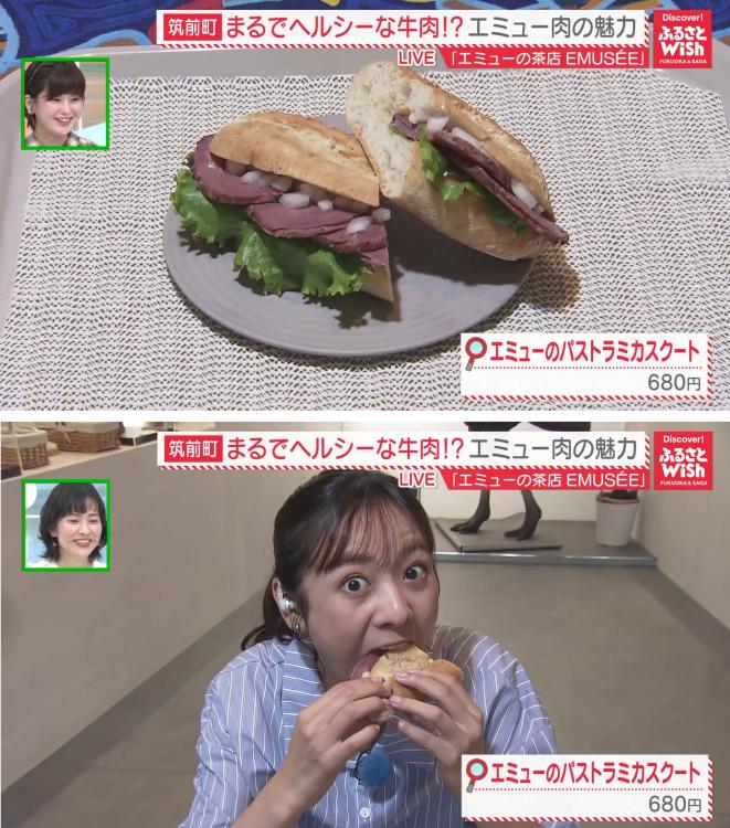 お店で一番人気のサンドイッチ。自家製のパストラミをたっぷりと挟んでいます。初めてエミュー肉を食べた深川リポーターも「おいしい!全然クセがなくて、鶏肉よりも味が濃くて食べ応えがあります」と、そのおいしさに驚いていました。