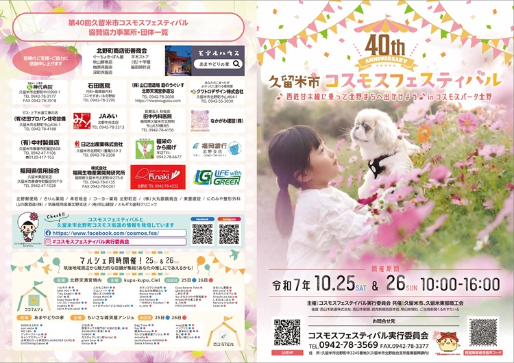 10月25日(土)と26日(日)の2日間、久留米市の秋を代表する一大イベント『第40回久留米市コスモスフェスティバル』が行われます!