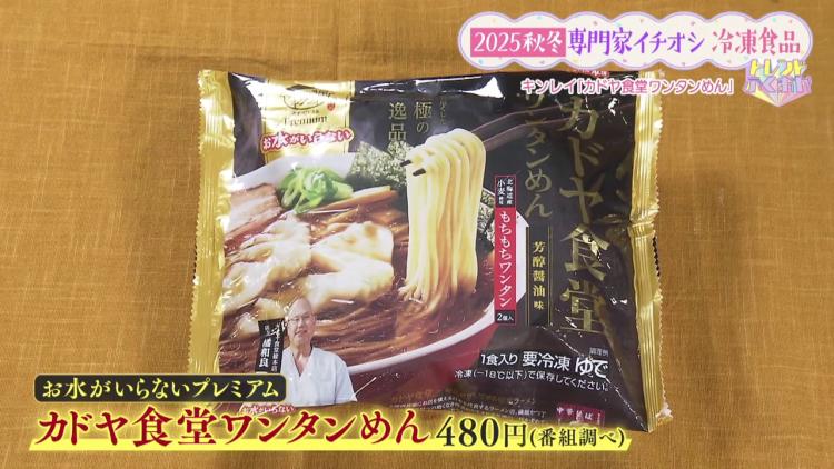 鍋焼うどんで有名な「キンレイ」のお水がいらないシリーズから「お水がいらないプレミアム カドヤ食堂 ワンタンめん」(480円・番組調べ)が、8月に発売されました。