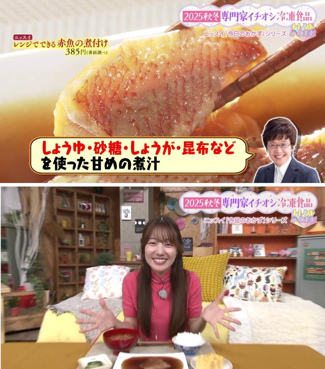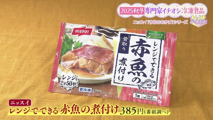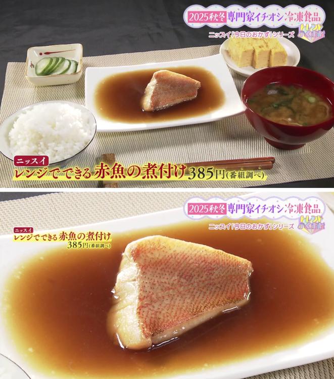 ニッスイの「今日のおかず」シリーズから登場した 「レンジでできる赤魚の煮付け」(385円・番組調べ)。