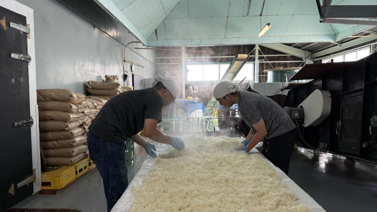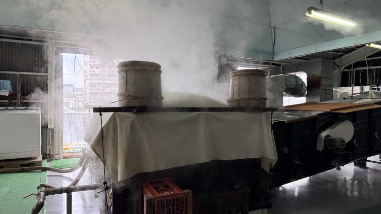 大賀酒造の酒造りは、原料選びから徹底しています。原料米には福岡・糸島産の最高級山田錦や夢一献などを使用。そして、昔ながらの木の甑で米を蒸し、麹蓋などの伝統的な道具を用いて麹を造るなど、職人が五感を研ぎ澄ませて丁寧な手作業で酒造りと向き合っています。この品質本位の姿勢で、350年という長い歴史を途切れさせることなく紡いでいます。