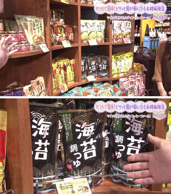 店頭には、「かぼす鍋つゆ」や「鶏白湯鍋つゆ」、「海苔鍋つゆ」など、気になる鍋つゆがたくさん!