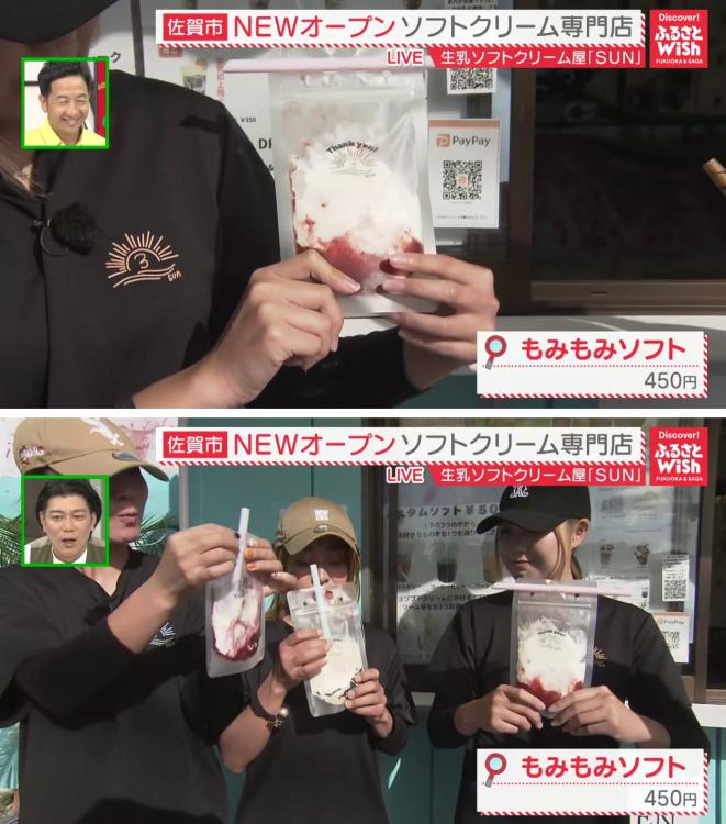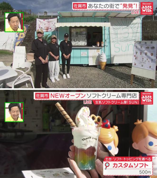 『元祖吉野屋』のすぐ隣には、今年(2025年)8月にオープンしたばかりの『生乳ソフトクリーム屋「SUN」』。もともと職場が一緒だったという新ヶ江美佳さん、高山都代子さん、中島有彩さんの3人が、意気投合してオープンさせたお店です。