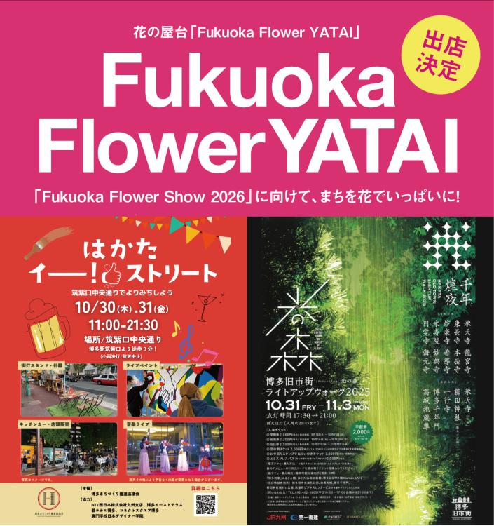博多エリアのまち歩きと共に、ぜひ「Fukuoka Flower YATAI」で秋の花々をお楽しみください!