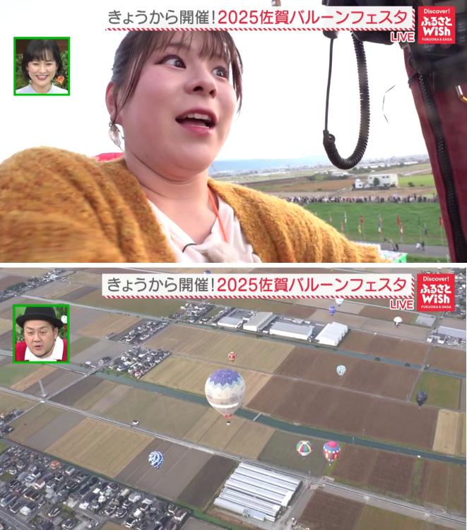 特別に熱気球に搭乗させていただいた大川リポーターは「浮いてる!」と興奮しながら、ぐんぐん上空へ。