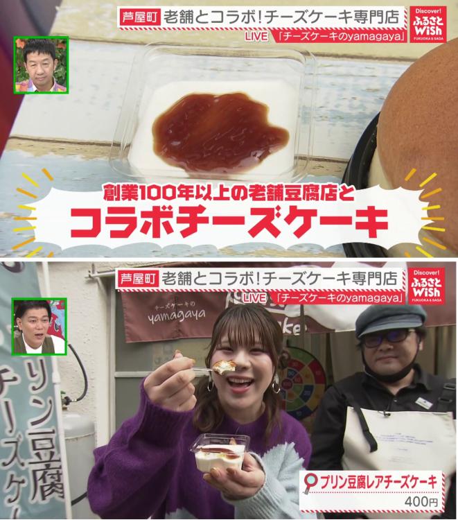 創業100年を超える 地元の老舗『福田豆腐店』とコラボした「プリン豆腐レアチーズケーキ」(400円)を開発しました。