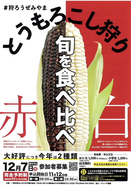 【 11/12受付スタート!】赤白の狩りたてトウモロコシを畑で食らえ!12/7『#狩ろうぜみやま とうもろこし狩り』(福岡・みやま市)【イベント】