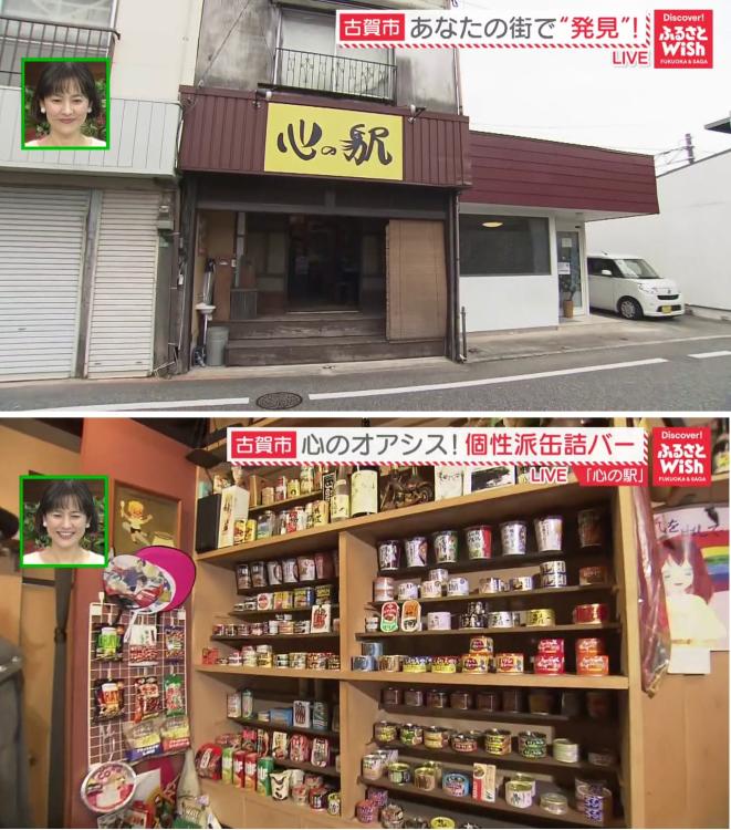 JR古賀駅西口から歩いてたったの30秒の場所にある『心の駅』を紹介します。一見、入り口はこぢんまりとしていますが、中に入ると壁一面に缶詰が並んでいます。