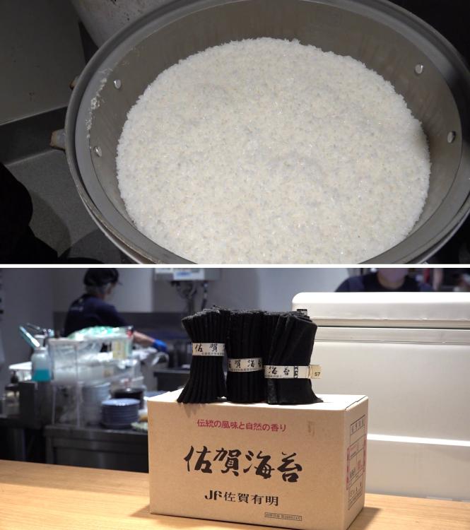 お米を包む海苔は、柔らかく香り豊かな佐賀有明海苔を使用しています。