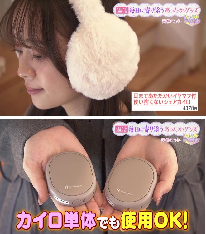最後は、お出かけに欠かせない「耳まであたたかいイヤマフ付使い捨てないシェアカイロ」(4378円)。 ふわふわのイヤーマフの内側に専用のカイロをセットでき、電源を入れるとすぐに温まります。 カイロ部分は取り外して単体でも使えるので、ポケットに入れて手先を温めるのにも便利! 見た目もかわいく、防寒対策もバッチリな最強アイテムです。