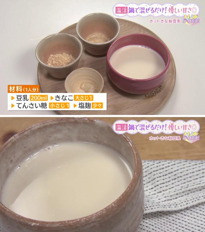 【材料】豆乳200ml/きなこ大さじ1/てんさい糖小さじ1/隠し味に塩麹少々