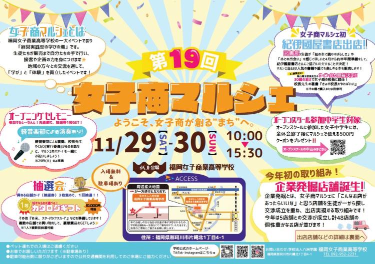 11月29日(土)、30日(日)は「福岡女子商業高等学校」の生徒たちが企画・交渉・運営する『第19回 女子商マルシェ』が開催!48店舗の個性豊かなお店が並びます。