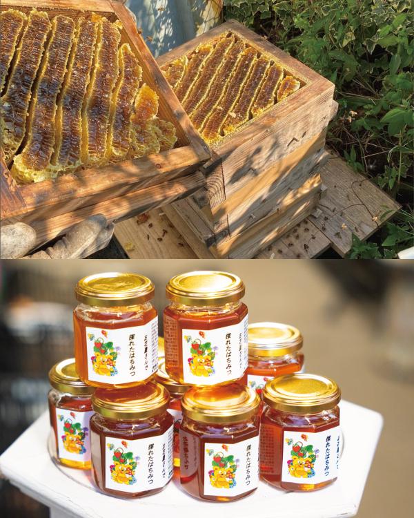 「松末フラワーパーク」のもう一つの大きな見所は、なんと「ハチミツ」!実は店の裏手でニホンミツバチを飼育しているんです。