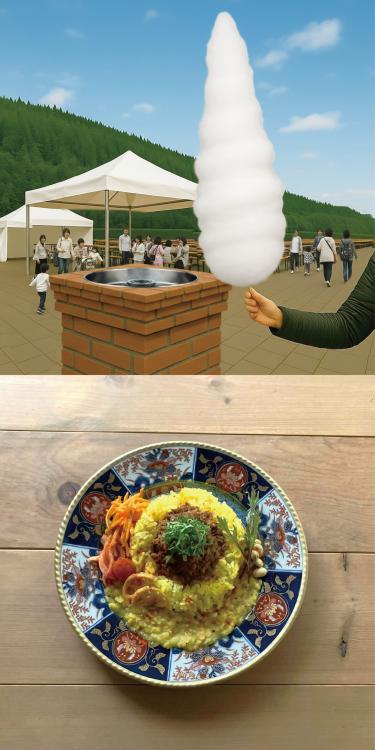 注目は、煙突から上る煙をヒントに開発された「えんとつわたあめ」 。空に向かって伸びる日本一長い(!?)わたあめはインパクト抜群で、子どもたちの笑顔が弾けそう 。また、完全予約制の名店「カレーのアキンボ」など、地元・佐賀の絶品グルメが伊万里焼の器で提供される贅沢な食体験も 。目でも舌でも伊万里の魅力を堪能できます。