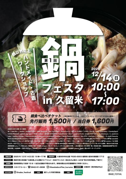 急に冷え込みが厳しくなってきたこの季節にぴったりのイベント『鍋フェスタin久留米』が、12月14日(日)に久留米中央公園で開催されます!