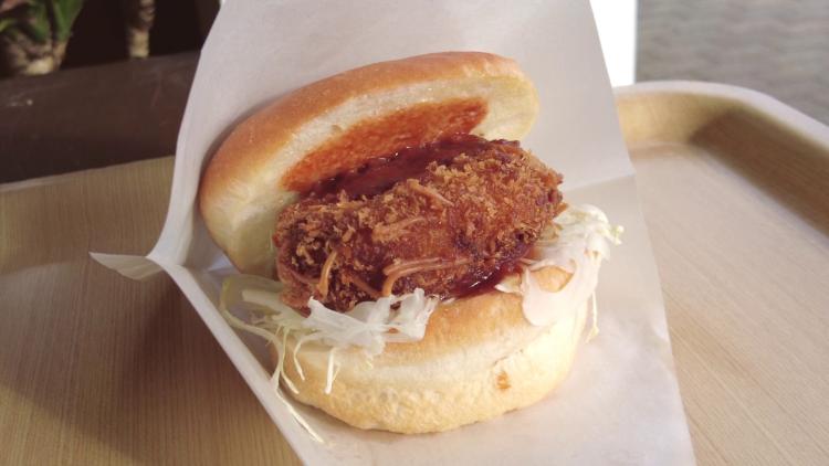 神埼のご当地グルメ「神埼そうめん」を使った「そうめんコロッケ」をサンドしました。