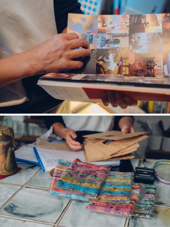 店内を見渡すと、手書きの「taramu通信」が置かれている。毎月約400部を手作りし、福岡市内や久留米、長崎など約50店舗に配布している広報紙だ。原稿は夫が担当し、村田さんが印刷・裁断を行う。