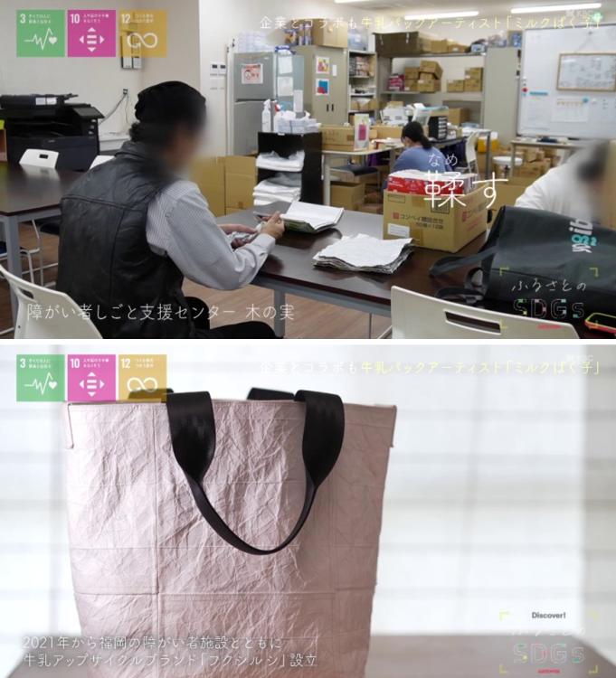 この活動をさらに広げるため、牛乳パックのアップサイクルブランド『フクシルシ』を設立。ミルクぱく子さんプロデュースのもと、福岡県内の「障がい者就労支援センター」のみなさんが作り手となり、商品を生産。地域の中に新たな仕事の循環を生み出しています。