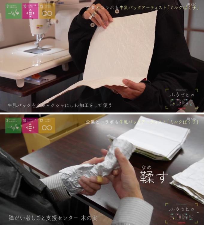 今回は、役割を終えた牛乳パックを新たな製品へ生まれ変わらせる、牛乳パックアーティスト『ミルクぱく子』(福岡市)さんの活動を紹介します。