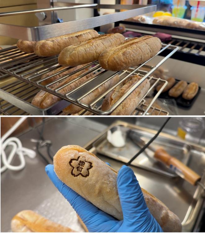 現在は、学問の神様「太宰府天満宮」にちなみ、2月末までの期間限定で「合格」の焼き印が押された特別な明太フランスが登場しています(※1日1000本限定)。
