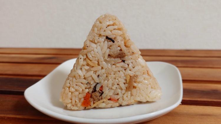 具材たっぷりの五目おにぎりに、爽やかな生姜の香りがアクセント。 油っこさがなく、さっぱりと飽きずに食べられる一品です。