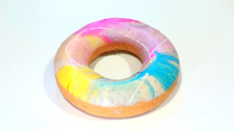 カラフルなマーブル模様が目を引くアメリカンなドーナツ。